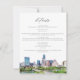 Diese Hochzeitsdetails-Karte zeigt ein Aquarellbild der wunderschönen Skyline von Austin, Texas. Editieren Sie einfach *most*, um Ihren Eventbedürfnissen gerecht zu werden. Ändern Sie die Hintergrundfarbe und fügen Sie Ihr eigenes Foto zur Rückseite hinzu, wenn Sie möchten.