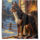 A heartwarming holiday scene featuring a dog sitting peacefully beside a window, surrounded by glowing Christmas lights. This cozy and festive design captures the spirit of the season, perfect for adding warmth and charm to any space. Ideal for dog lovers and holiday decor enthusiasts.