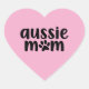 Adorable pink heart sticker featuring “Aussie Mom,” perfect for proud Australian Shepherd dog moms. Great for decorating water bottles, laptops, planners, car windows, or dog gear. A sweet and stylish way to show love for your Aussie while adding a pop of feminine, pet-lover charm to your everyday items.