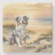 Dog moms and dog lovers of the Australian Shepherd dog breed will adore this coaster set that features a summer beach cove with tall grasses and the sun setting over the ocean that sets off a sweet Australian Shepherd dog.