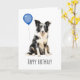 Adorable Geburtstagskarte mit einem schönen schwarz-weißen australischen Schäferhund. Es ist sicher, ein Lächeln ins Gesicht eines Aussie Hundeliebhabers zu bringen.