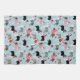 Niedlicher Valentinstag Australische Schäferhunde in schwarz, braunen Tri- und Merllmäntel mit roten, rosa und weißen Polka-Dots und Pullover mit verstreuten Pfotendrucken und Pfeil auf blauem Hintergrund.