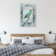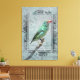 Star Finch mit rotem Schnabel auf einem Zweig mit texturiertem musikalischem Hintergrund und Glitzern.