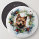 Australian Terrier Christmas Wreath Festive Pup Button
