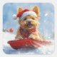 Australian Terrier in Sledge Let it Snow Christmas Quadratischer Aufkleber