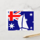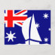 Australian Flag Segelboot / Yacht Australia Nautical Postcard. Segelyacht Silhouette und australische Flagge mit Union Jack, sieben spitzen Stern und Southern Cross Sterne Konstellation nautische Postkarte.
