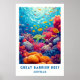 Bringen Sie die lebendige Schönheit des Ozeans mit diesem Australia Great Barrier Reef-Reiseplakat in Ihren Raum. Inspiriert von klassischer Vintage-Reisekunst, fängt dieses atemberaubende Design die farbenfrohen Korallenriffe und das unglaubliche Meeresleben des weltberühmten Great Barrier Reef ein. Perfekt für Strandliebhaber, Taucher, Reisende und Ozeanliebhaber, verleiht dieses Kunstwerk jedem Zuhause, Büro oder Strandhaus eine erfrischende Küsten- und Tropenatmosphäre. Gedruckt mit lebendigen Farben und zeitlosem Stil ist es ein ideales Geschenk für Reisebegeisterte und alle, die von Australiens atemberaubendem Unterwasserparadies träumen.
