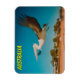 Ein Pelikan, der am Strand von Monkey Mia, Western Australien, fliegt.