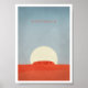 Das ist ein modernes und minimalistisches Reiseplakat Australiens. Die riesige Sonne Set langsam hinter dem Ayers Rock/Uluru.