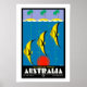 Vintage Reiseplakat für Australien Förderung des Great Barrier Reef in Queensland mit drei tropischen Fischen und Palmen Inseln.