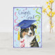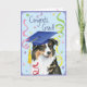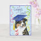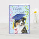 Beglückwünschen Sie Ihren Lieblingsabsolvent mit einem Geschenk, das einen niedlichen, glücklichen australischen Schäferabsolvent kennzeichnet, der einen Mortarboard unter einer Aufregung von Confetti trägt.
