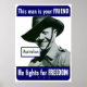 Dieses Vintage Poster des Zweiten Weltkriegs zeigt einen lächelnden australischen Soldaten. Es heißt: "Dieser Mann ist dein Freund, Er kämpft für die Freiheit". Feiern Sie die amerikanische, australische und WW2-Geschichte mit diesem digital restaurierten Vintagen Kriegsposter aus dem The War Is Hell Store. Woll mehr Militär- und Geschichtsprodukte? Karo