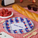 Personalisierte Teller aus Party sind diagonal mit der Flagge Australiens und dem Wort AUSTRALIA darunter gekachelt. Ein weißes Fraktal quadratischer Quadrate bietet einen Platz für Ihren Namen, in blauen Buchstaben, um eine personalisierte Touch hinzuzufügen oder spezielle Teller für Ihre Wiedersehen zu erstellen. Design ist perfekt für Wiedersehen der Familie.