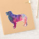 Hunde Rasse Seitenansicht des australischen Schäferhirds gefüllt mit farbenfrohen lila geometrischen Mustern. Diese Silhouette kann auch vertreten: Aussie, Border Collie, Welsh Sheepdog, English Shepherd, McNab, New Zealand Position, Atlas Shepherd, Mountain Shepherd, Australian Kelpie, Berber, Bohemischer Hirte, Kroatische Hirte, Amerikanische Hirte, Drent, Drenthe, Dutch Gundog, Dutch Partridge Dog, Mudi, Old Farm Collie, Scottish Collie