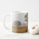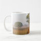 Kaffee-Tasse verziert mit einer Farbphotographie eingelassen dem weichen Licht eines australischen Morgens eines östlichen grauen Kängurus, der herein unter den Gummibäumen in der Zentrale westlich NSW, Australien sitzt. Teil der Geschenksammlung "des australischen Morgens" des Landsitz-Hügels bei Zazzle.