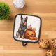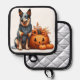 Australischer Rinderhund neben einem Jack-O-Lanter Topflappen