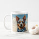 Verwandeln Sie Ihre Morgenroutine mit dem Charme der australischen Schäfer-Kunst, die Ihre Tasse schmückt. Jeder Schluck wird zu einer Feier der Intelligenz und Loyalität der Rasse, schön gefangen in komplizierten Details. Entspannen Sie Ihren Kaffee mit dem Geist dieser geliebten canine Begleiter.