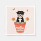 Fun Illustration für Frühling und Sommer für alle Hundefreunde. Ein australischer Hirte, der aus einem Blume-Topf herausspringt, umgeben von zwei Blume und Schmetterlingen.