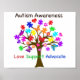 Schöner und einzigartiger Autismus-Baum mit Autismus-Rätsel, Schmetterlingen, Herz und "Liebe Support Advocate" zur Unterstützung der Autismus-Bewusstsein.