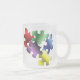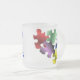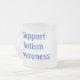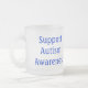 Primärfarbautismus-Bewusstsein auf mattiertem Glas"Stützautismus-Bewusstseins" Text im Blau auf gegenüberliegender Seite der Tasse. Text kann besonders angefertigt werden.