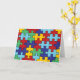 Diese Gegenstände sind mit einem farbenfrohen Puzzleteil-Muster bedruckt, das das Autismus-Bewusstsein symbolisiert.