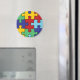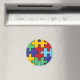 Diese Gegenstände sind mit einem farbenfrohen Puzzleteil-Muster bedruckt, das das Autismus-Bewusstsein symbolisiert.