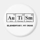 Das Wort "Autismus" aus Elementen im Periodensystem, Gold, Titan und Samarium geschaffen. Ein Wortspiel und ein sanftes Nicken auf die oft falsch zitierte, aber berühmte Zeile "Elementary, my lieb Watson". Inspiriert von einem Wegweiser eines Weltexperten für Autismus und Aspergers - "Sherlock Holmes, dein quintessenzieller Aspie".