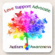 Wunderschöner Spektralbaum mit Autismus-Rätsel, Schmetterlingen und Herz mit der Botschaft von "Liebe Support Advocate", um Autismus Bewusstsein zu unterstützen.