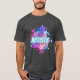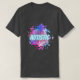 Das Shirt des Autistischen Paint Spritzer Gehirns beinhaltet eine weiße Kontur auf einem farbigen Spritzer, der rosa, aquamarin, lila und blau ist, und das Wort Autistic wird in aquamariner Schrift auf der Hirnmitte geschrieben und Spritzer lackiert.