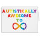 Design mit Liebe für Autismus Bewusstsein. Regenbogenbuchstaben bilden den Begriff "autistisch Phantastisch zur Unendlichkeit" mit einem Unendlichkeitssymbol.