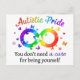 Farbenfrohe Unendlichkeit für Autistischen Stolz und die Botschaft von "Du brauchst kein Heilmittel, um dich selbst zu sein" mit wunderschönen Schmetterlingen, Herzen und Blume. Es ist ein großartiges Geschenk, den Autistischen Pride Day am 18. Juni jedes Jahres zu feiern.