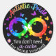 Farbenfrohe Unendlichkeit für Autistischen Stolz und die Botschaft von "Du brauchst kein Heilmittel, um dich selbst zu sein" mit wunderschönen Schmetterlingen, Herzen und Blume. Es ist ein großartiges Geschenk, den Autistischen Pride Day am 18. Juni jedes Jahres zu feiern.