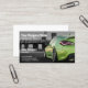 Eine atemberaubende Fotografie von hinten ein grünes Supersportauto mit einer Schwarzweiss-Sättigung und einem dunkleren Hintergrund lässt das Auto-Foto kontrastierender sein. Diese Geschäftskarte ist für Sie perfekt, die als Autoverkäufer, AutoReparaturwerkstatt oder Autohändlerfirmen arbeiten.