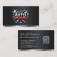 This bold and modern auto repair business card features a sleek metallic 3D style design with a polished mechanic‑tools logo that instantly communicates professionalism and hands‑on expertise. The brushed black background and chrome‑style emblem give the card a rugged, industrial look that stands out and reflects the strength and reliability of your automotive services. the back includes your name, contact information, phone number, email, and website, and a QR code for scanning for making it easy for customers to reach you when they need fast, dependable auto repair.