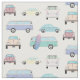 Eine niedliche und farbenfrohe VW-Kollektion klassischer Autos.
