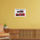 Poster mit einem Foto-Druck eines schlanken Rennsportwagens. Im Value Matte Poster Papier gezeigt, aber Sie können Upgrade & anpassen. Anpassen oder kaufen, wie gezeigt. Börsenbild freepik.com
