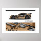 Poster mit einem Foto-Druck eines schlanken Rennsportwagens. Im Value Matte Poster Papier gezeigt, aber Sie können Upgrade & anpassen. Anpassen oder kaufen, wie gezeigt. Börsenbild freepik.com