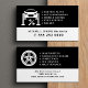 Modern, fully editable black and white car automotive mechanic service repair business card with specific logo and services list.