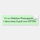 Ein grüner Autoaufkleber mit dem Satz: "Ich bin Outdoor-Fotograf, ich verlangsame und ziehe OFTEN".