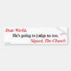 Autoaufkleber: "Liebe World, wird er uns auch beurteilen. Unterzeichnet, die Kirche"