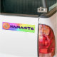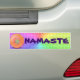 Das OM-Symbol und das grüßenNAMASTE auf einem mehrfarbigen Hintergrund. NAMASTE Bedeutung: "Ich ehre den Platz in Ihnen, wo Geist lebt, ich ehre den Platz in Ihnen, welches von der Liebe, der Wahrheit, des Lichtes, von Frieden ist, wenn Sie in diesem Platz in Ihnen sind, und ich bin in diesem Platz in mir, dann sind wir einer."