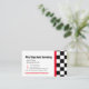 Geschäftskarte für Automobil-/Autoauto-BewegungsErholung und instandhaltenfachleute des Autos. Bewegungslaufender karierter Flaggenentwurf in rotem weißem und schwarz. Personifizieren Sie mit Ihren eigenen Geschäftsdetails und Geschäftsdetails. Entworfen durch Sarah Trett.