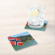 Untersetzer mit der norwegischen Flagge auf einer Autofähre zwischen Solvorn und Urnes auf einem Fjord in Norwegen.