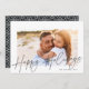Versenden Sie Ihre Urlaubstage mit unseren eleganten Fotokarten an Freunde und Familie im schicken Stil. Das Design zeigt Ihr beliebtes, horizontal oder landschaftsorientiertes Foto, gerahmt durch eine dicke, weiße Grenze, mit "Happy Holidays", oben in weichem, schwarz handgeschriebenem Skript. Personalisieren Sie Ihre Daten mit Ihrem Familiennamen und dem Jahr in der unteren rechten Ecke.