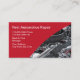 Automobilgeschäftskarte mit modernem rotem Entwurfselement und Bild eines Auto-Motors im Hintergrund. Schließt Textraum ein, den Sie auf beiden Seiten mit eingeschlossenen dem Seitendrucken zwei personifizieren können. Entworfen als Geschäftskartenschablone für eine AutoReparaturwerkstatt, ein Automechaniker oder Autoteile und -service.