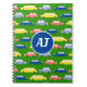 Niedliches, Cartoon, buntes Auto Parade Notizbuch für Schüler mit Rieseninitialen.