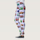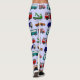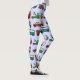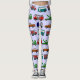 Diese Leggings haben ein neues Design von LKWs und Bussen in rot, blau, grün und braun auf einem hellblauen Feld.