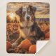 Erleben Sie den ultimativen Komfort und die Freundschaft mit unserer herzerwärmenden, gemütlichen Decke mit einem bezaubernden australischen Schäferhund inmitten eines Kürbisfeldes bei Sonnenuntergang. Es ist die perfekte Einladung, sich mit Ihrem Furry-Freund gemütlich zu machen und wertvolle Erinnerungen zu schaffen.