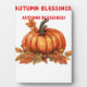 Autumn Blessings Pumpkin with Fall Leaves Classic Fotoplatte