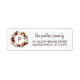 Benutzerdefinierte Rücksendeadressen-Aufkleber personalisiert mit Ihrer Familiendongram, Name und Adresse. Das Design besticht durch eine bohfarbene Aquarellblüte und einen Federkranz in rustikalen Herbstfarben. Verwenden Sie die Designtools, um die Hintergrundfarbe und die Schriftart zu ändern, um Ihr eigenes, einzigartiges Design weiter anzupassen. Ideal für eine Herbsthochzeit, eine Babydusche, einen Erntedank, der in diesem Herbst ein wenig feierlicher ist oder einfach nur Ihre Post macht!